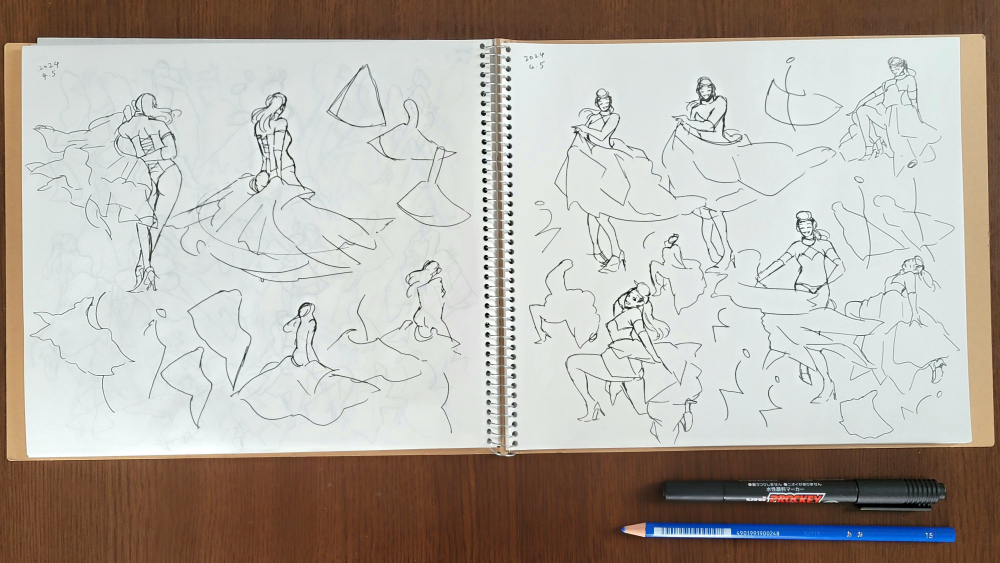 2024/04/05 ジェスドロ 2024-04-05 VST/スタディ リファレンス:GESture DRAWing Party : #098 Milah Swallowtail/ミラ・スワロウテイル -Video/Photo Reference for Figure Drawing- (youtube.com) 今回は静止画ギャラリーの方も描かせていただきました。 スカートばさ~~ッ!!なリファレンス楽しかった~!