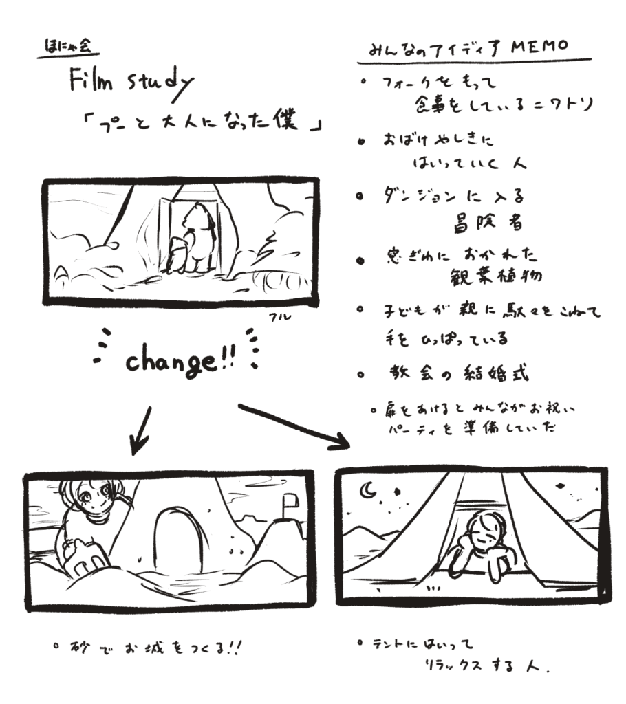 2024/05/17 フィルムスタディ 2024-05-17 VST/スタディ リファレンス:プーさんたちが100エーカーの森を飛び出す!『プーと大人になった僕』日本版予告編 (youtube.com) VST酒場のお絵かき会(ほにゃ会)にてzoomでサロン仲間とフィルムスタディしました